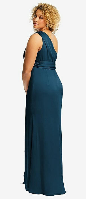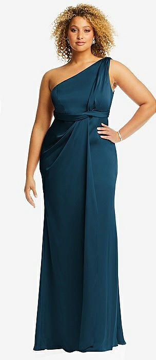 One-Shoulder Draped Twist Empire Waist Trumpet Gown in atlantic blue