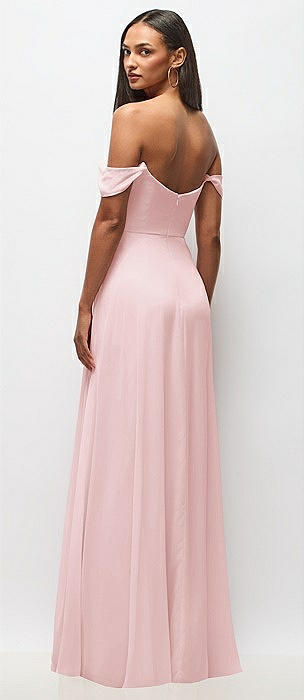 Off-the-Shoulder Bow-Back Satin Trumpet Gown in ballet pink