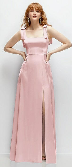 Square Neck Fluid Satin Maxi Dress with Bow Straps in ballet pink