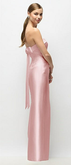 Strapless Satin Column Maxi Dress with Oversized Handcrafted Bow in ballet pink