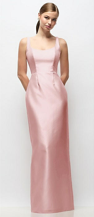 Scoop Neck Satin Column Maxi Dress in ballet pink