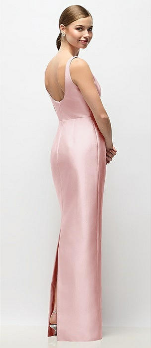Strapless Cuff Satin Maxi Dress with Column Skirt & Back Bow in ballet pink