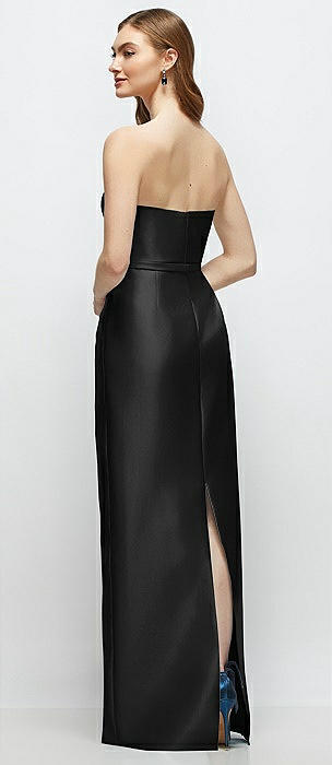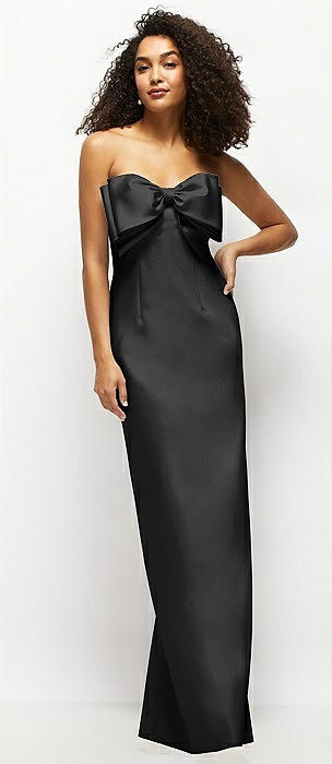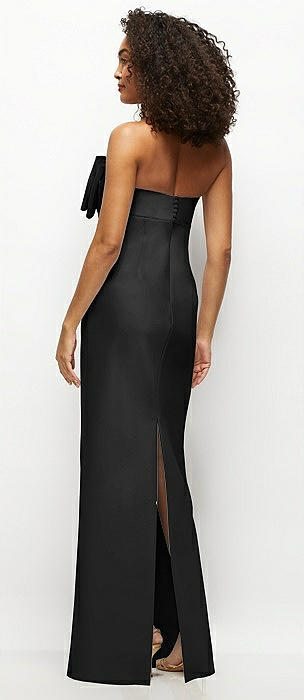 Strapless Satin Column Maxi Dress with Oversized Handcrafted Bow in black
