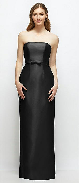Strapless Satin Column Dress with Bow-Trimmed Skinny Belt in black