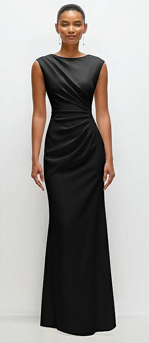 Sleeveless Cap Shoulder Crepe Maxi Dress with Trumpet Skirt in black