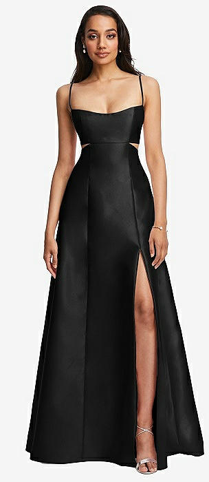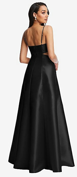 Open Neckline Cutout Satin Twill A-Line Gown with Pockets in black