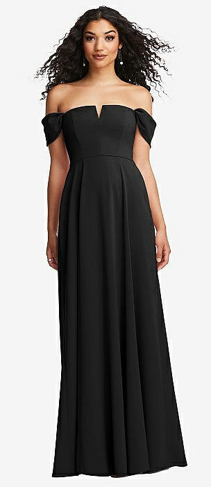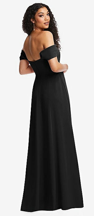 Off-the-Shoulder Cuff Trumpet Gown with Front Slit in black