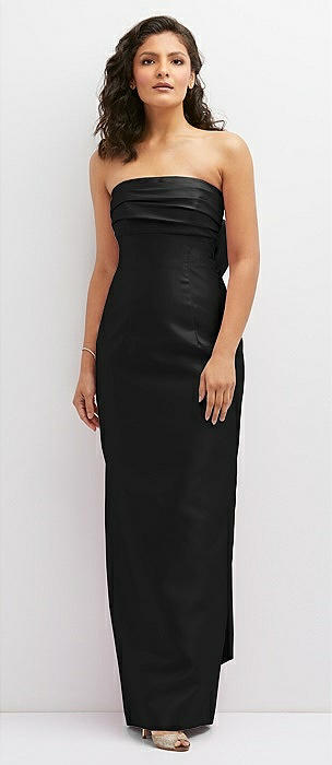 Strapless Draped Bodice Column Dress with Oversized Bow in black