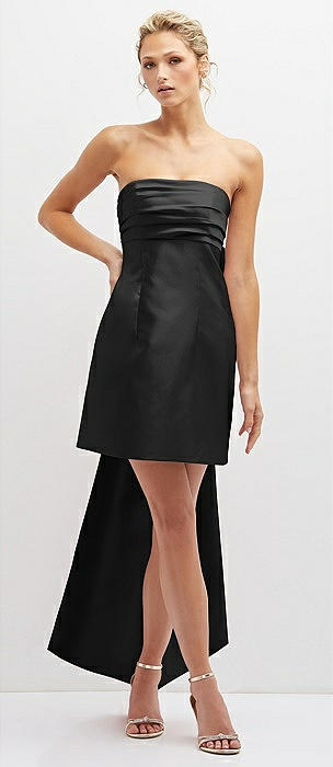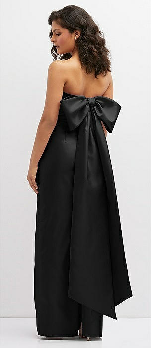 Strapless Satin Column Mini Dress with Oversized Bow in black