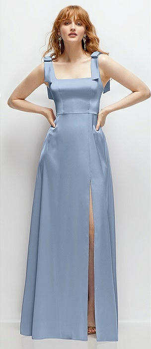 Square Neck Fluid Satin Maxi Dress with Bow Straps in cloudy