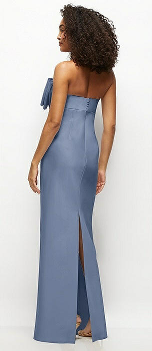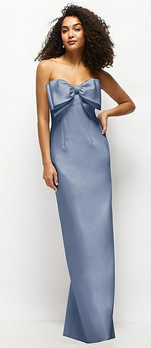 Strapless Satin Column Maxi Dress with Oversized Handcrafted Bow in larkspur blue
