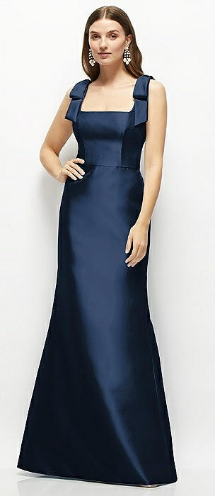 Satin Fit and Flare Maxi Dress with Shoulder Bows in midnight navy