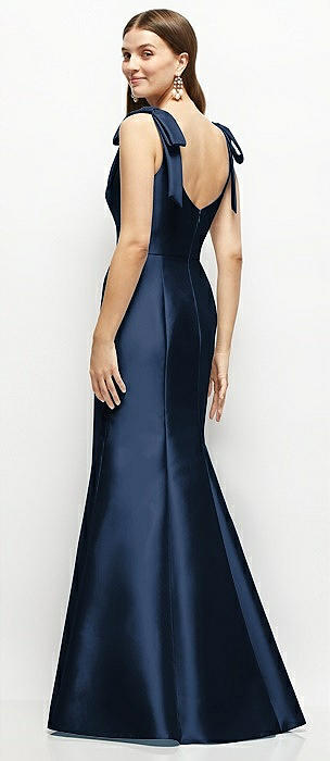 Cowl-Neck Open Tie-Back Stretch Satin Mermaid Dress with Slight Train in midnight navy