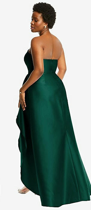 Strapless Satin Gown with Draped Front Slit and Pockets in hunter green