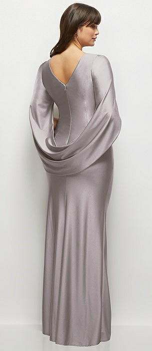 Draped Stretch Satin Maxi Dress with Built-in Capelet in cashmere gray