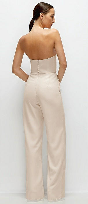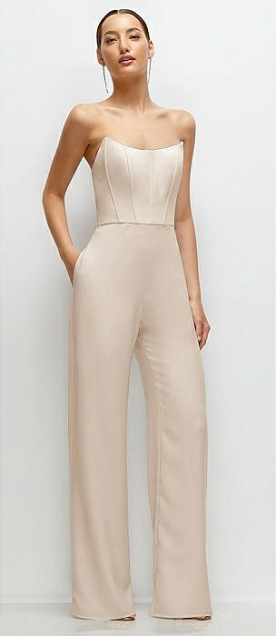 Strapless Cat-Eye Corset Crepe Wedding Jumpsuit in oat