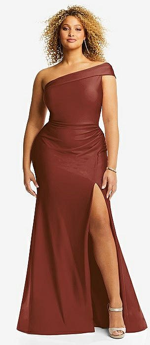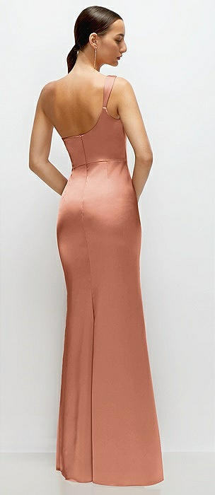One-Shoulder Bias-Cuff Stretch Satin Mermaid Dress with Slight Train in auburn moon