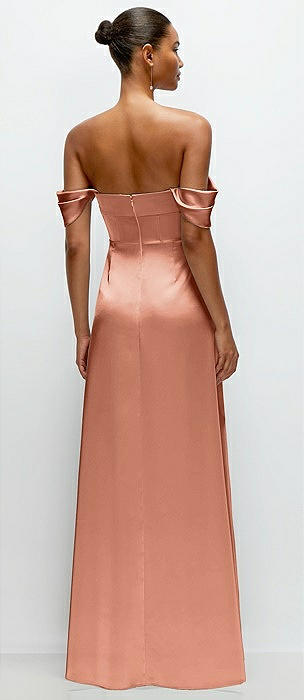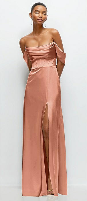 A-Line Satin Maxi Dress with Convertible Off-the-Shoulder or Strapless Looks in copper penny