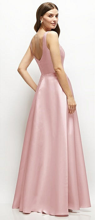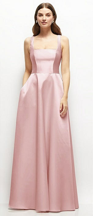 Square-Neck Satin Maxi Dress with Full Skirt in ballet pink