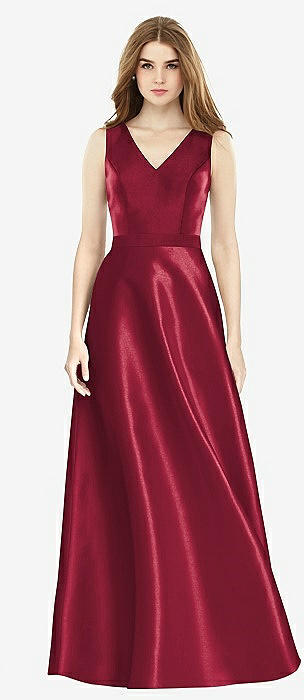 Sleeveless A-Line Satin Dress with Pockets in burgundy