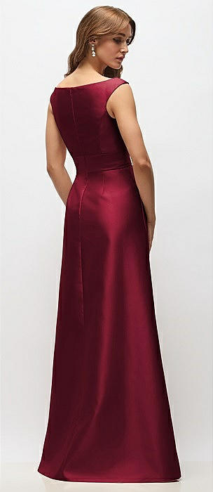 Off-the-Shoulder Bow-Back Satin Trumpet Gown in burgundy