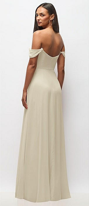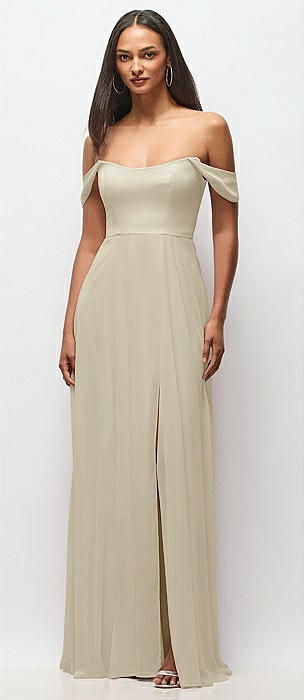 Off-the-Shoulder Basque Neck Maxi Dress with Flounce Sleeves in champagne