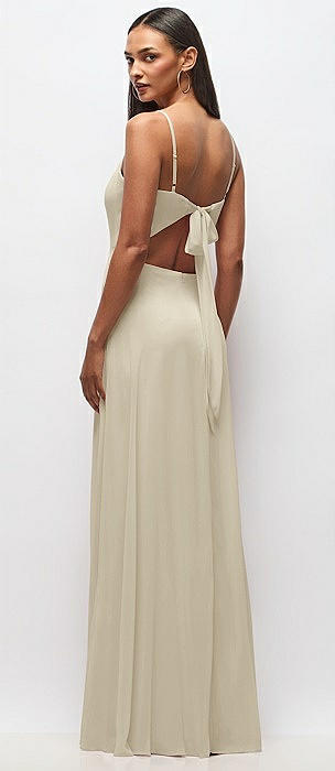 Tie-Back Cutout Maxi Dress with Front Slit in champagne