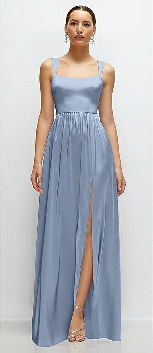 Square-Neck Satin Maxi Dress with Full Skirt in cloudy