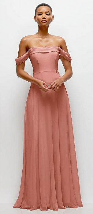 Off-the-Shoulder Draped Neckline Maxi Dress in desert rose