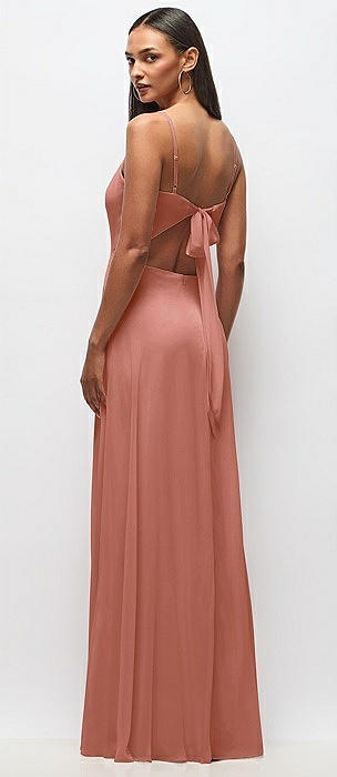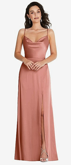 Cowl-Neck A-Line Maxi Dress with Adjustable Straps in desert rose