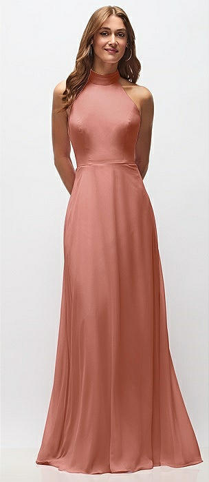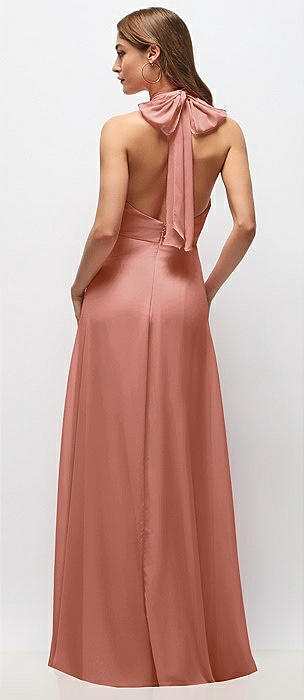 Scarf Tie High-Neck Halter Maxi Slip Dress in desert rose