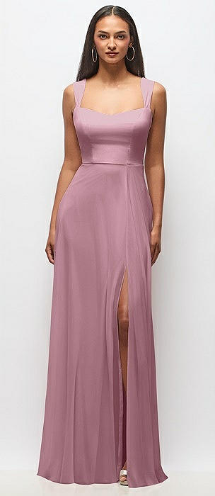Contoured Wide Strap Sweetheart Maxi Dress in dusty pink