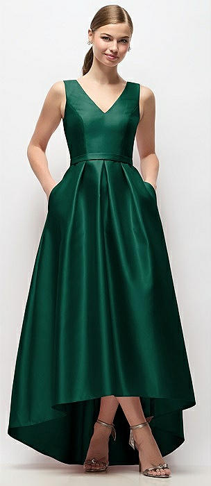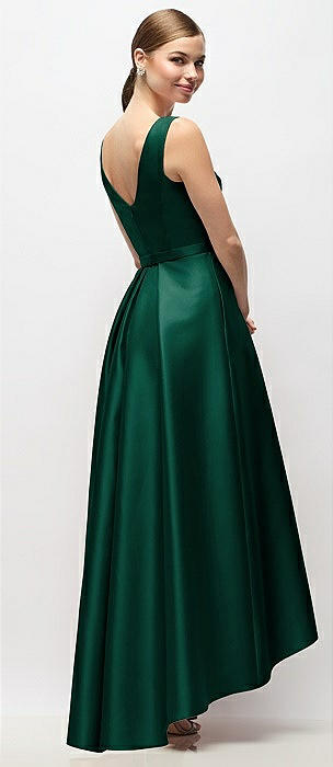 Bateau Neck Satin High Low Cocktail Dress in hunter green
