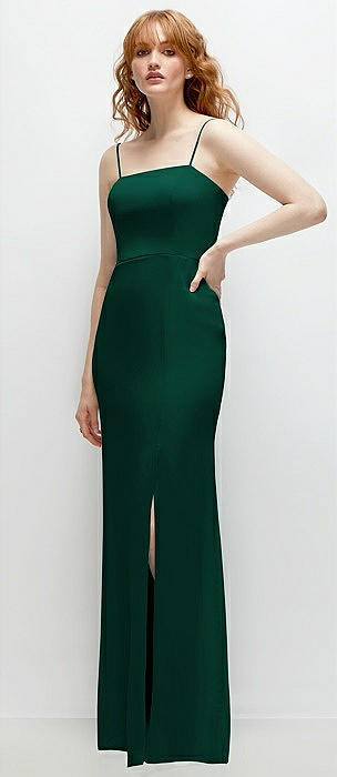 Sleeveless Square-Neck Princess Line Gown with Pockets in hunter green