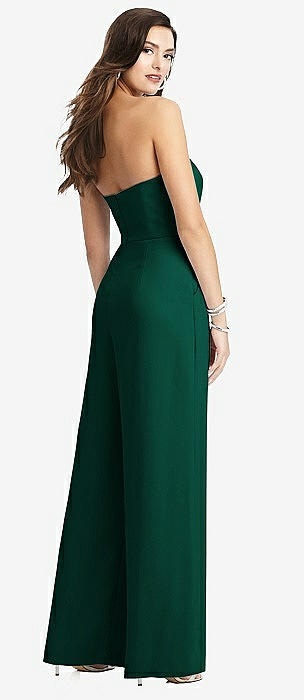 Strapless Notch Crepe Jumpsuit with Pockets in hunter green