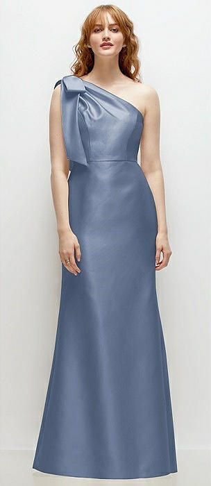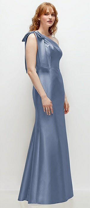 Bow One-Shoulder Satin Trumpet Gown in larkspur blue