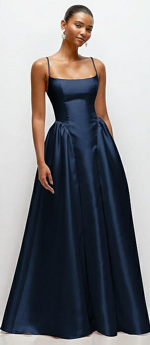 Square-Neck Satin Maxi Dress with Full Skirt in midnight navy
