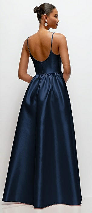 Scoop Neck Drop Basque Skirt Satin Maxi Dress with Pockets in midnight navy
