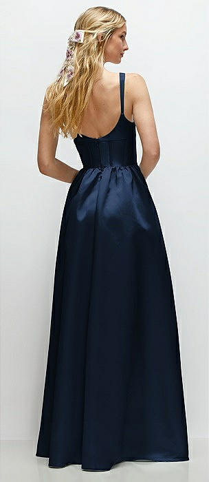 Strapless Bias Cuff Bodice Satin Gown with Pockets in midnight navy