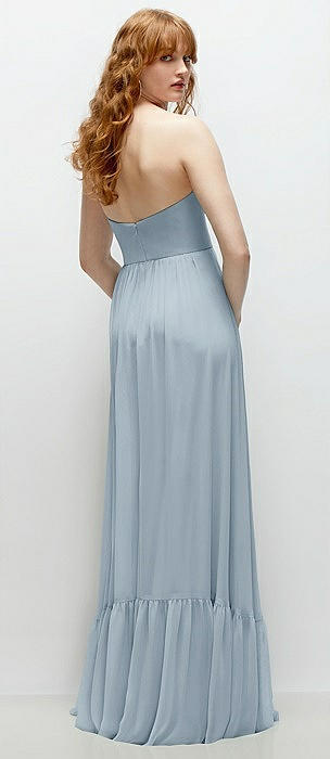 Strapless Deep Ruffle Hem Satin High Low Dress with Pockets in mist