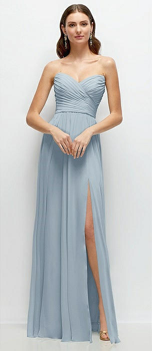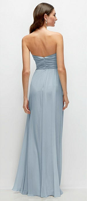 Strapless Pleated Surplice Chiffon Maxi Dress with A-Line Skirt in mist