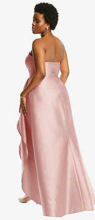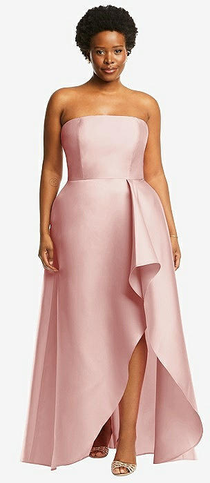 Strapless Satin Gown with Draped Front Slit and Pockets in rose