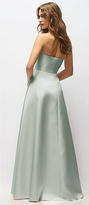 Strapless Hand-Pleated Bodice Satin Maxi Dress with Full Pleated Skirt in willow green