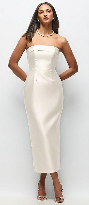 Strapless Cuff Satin Midi Dress with Column Skirt & Back Bow in ivory