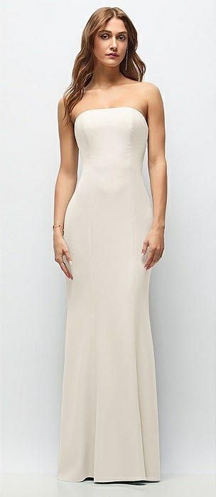 Strapless Fit and Flare Crepe Maxi Dress in ivory