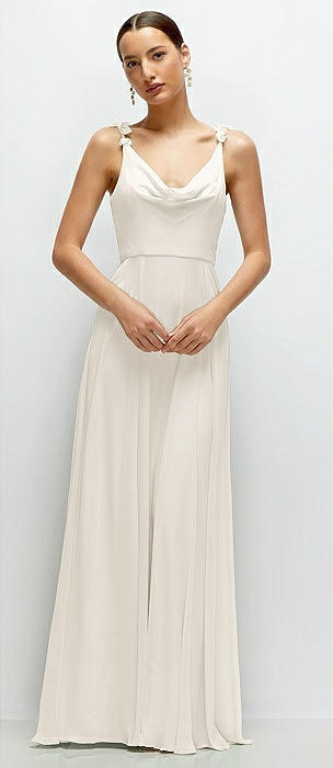 Cowl Neck Chiffon Maxi Dress with Hand-Worked Petal Straps in ivory