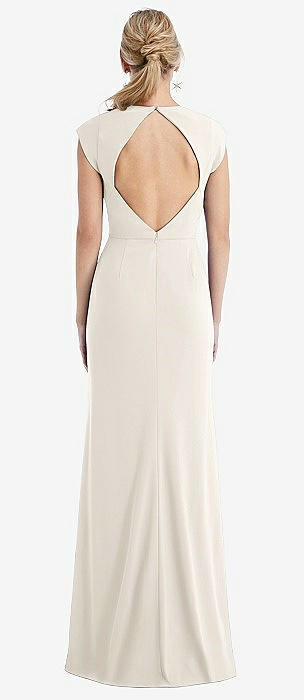 Cap Sleeve Open-Back Trumpet Gown with Front Slit in ivory