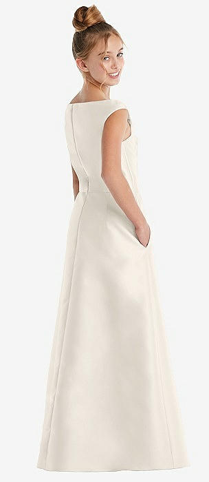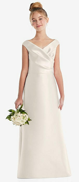 Off-the-Shoulder Draped Wrap Satin Junior Bridesmaid Dress in ivory