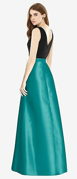 Sleeveless A-Line Satin Dress with Pockets in jade