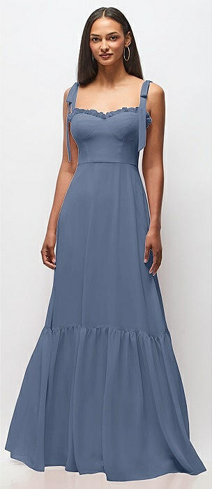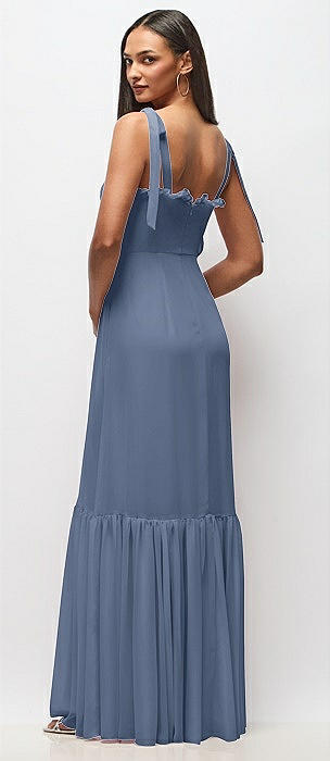 Tie-Shoulder Bustier Bodice Ruffle-Hem Maxi Dress in larkspur blue